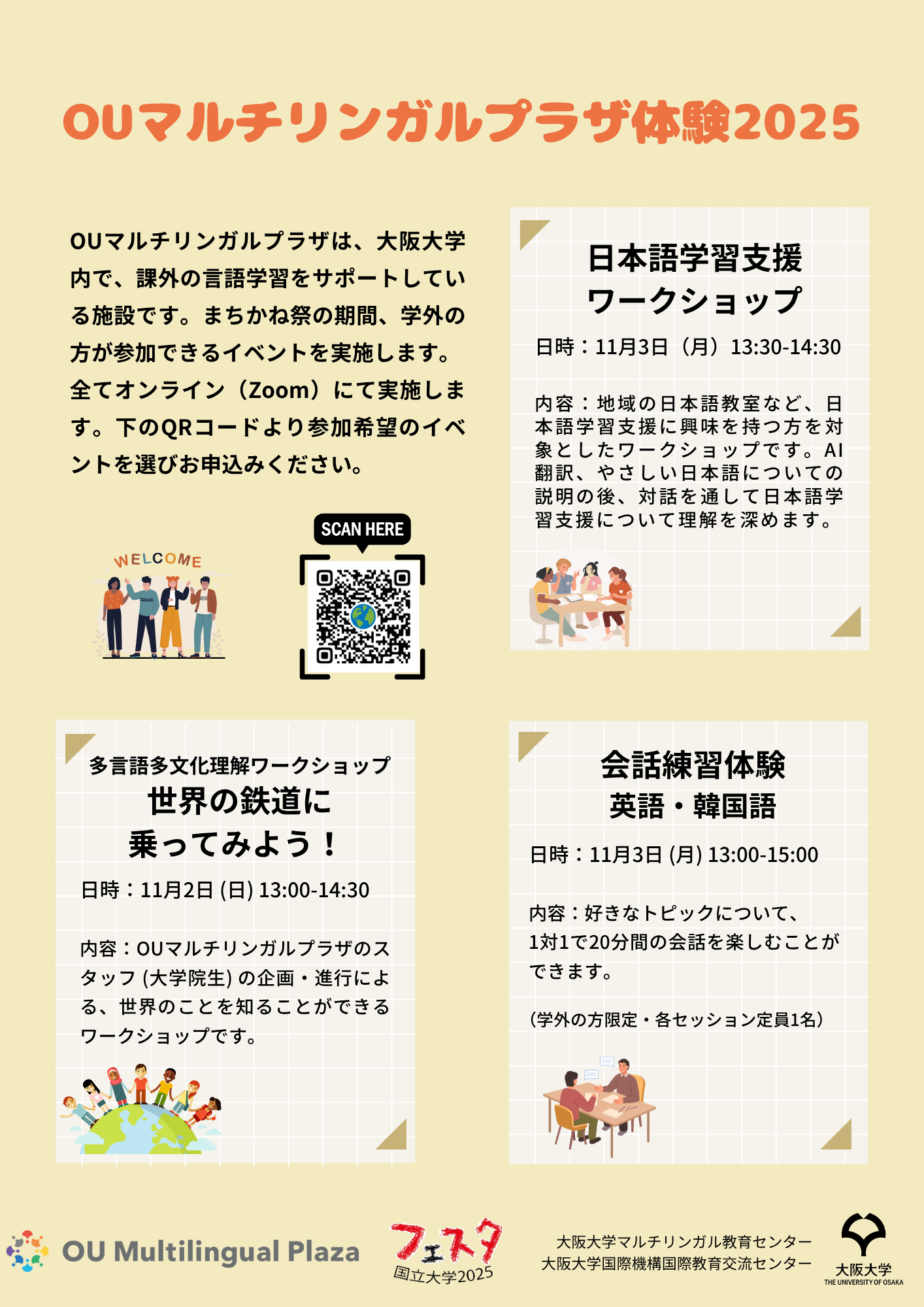 11月2日 (日)、3日 (月) に、「OUマルチリンガルプラザ体験2025」を開催します。
